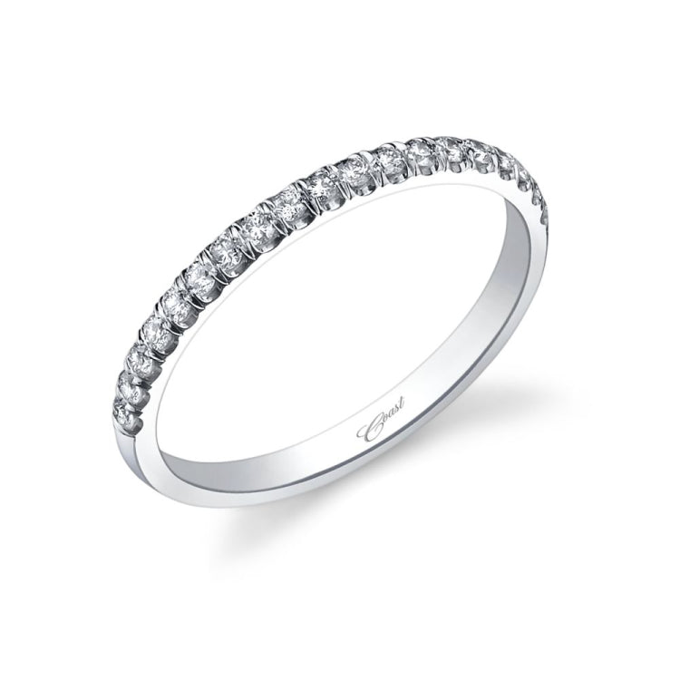 A gorgeous wedding band featuring fishtail set round brilliant diamonds across the top half of the band.
