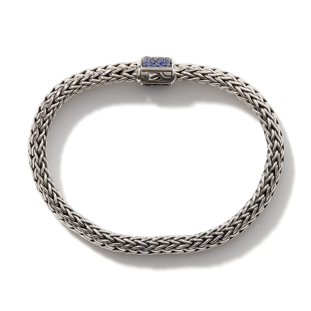 Icon Silver Small Reversible Bracelet 6.5mm with Pusher Clasp with Treated Black Sapphire and Blue Sapphire, Size UM