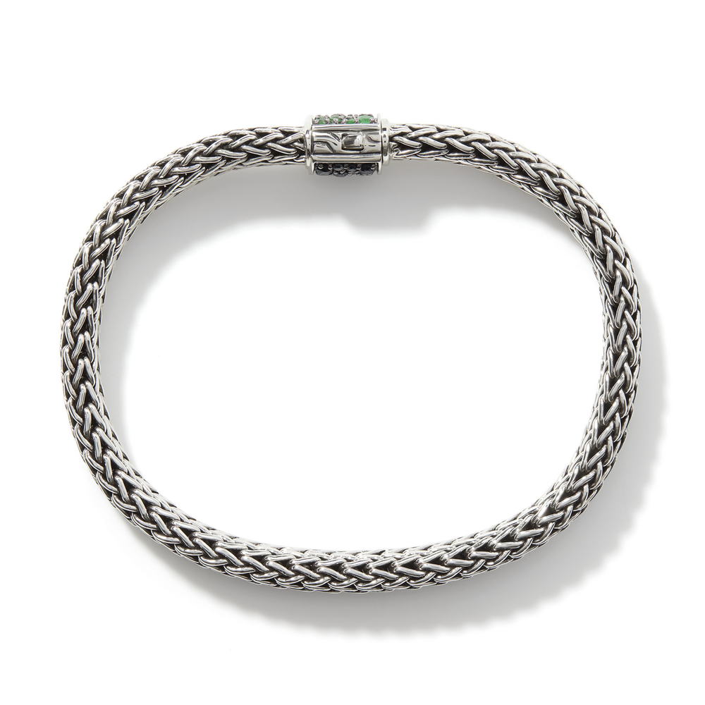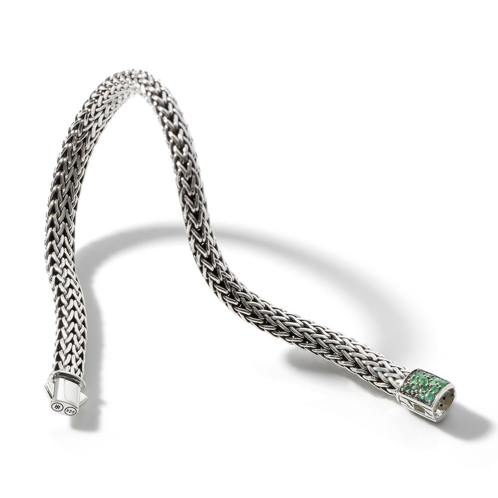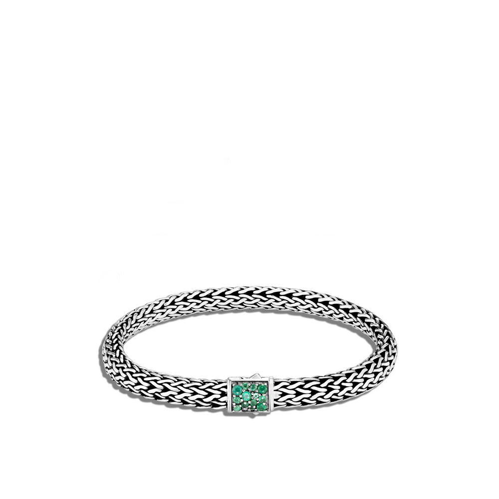 Icon Silver Small Reversible Bracelet 6.5mm with Pusher Clasp with Treated Black Sapphire and Emerald, Size UM