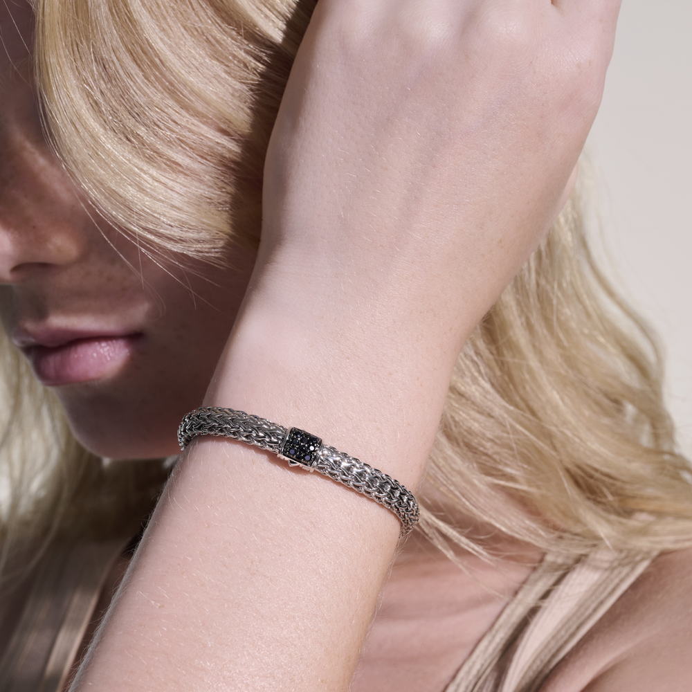 Icon Silver Lava Small Bracelet with Treated Black Sapphire, Size UM