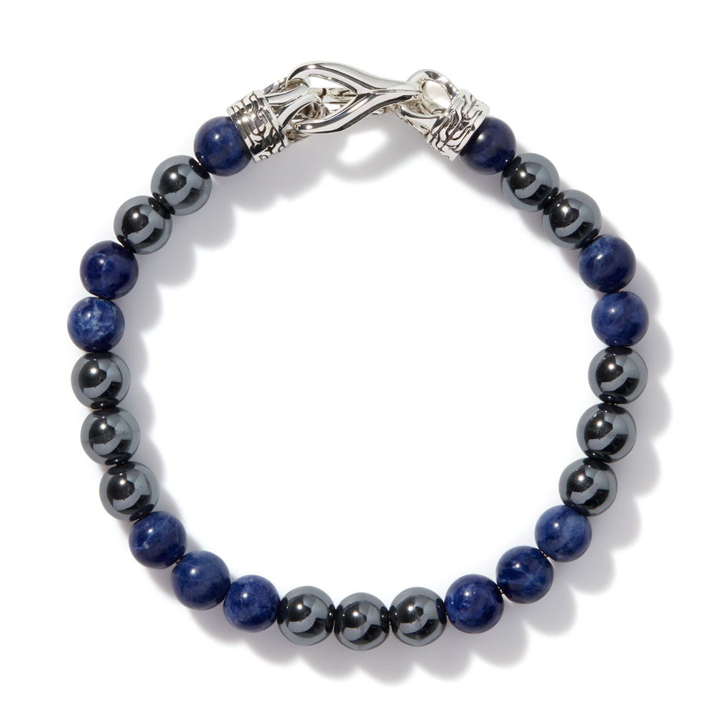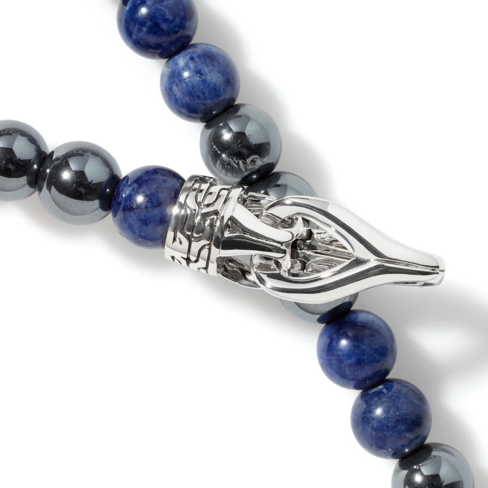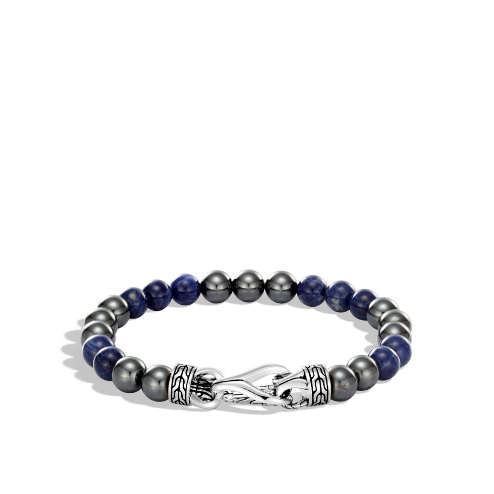 Men's Link Silver Bracelet with Hook Clasp with 8mm Sodalite and Hematite Beads Bracelet, Size UL