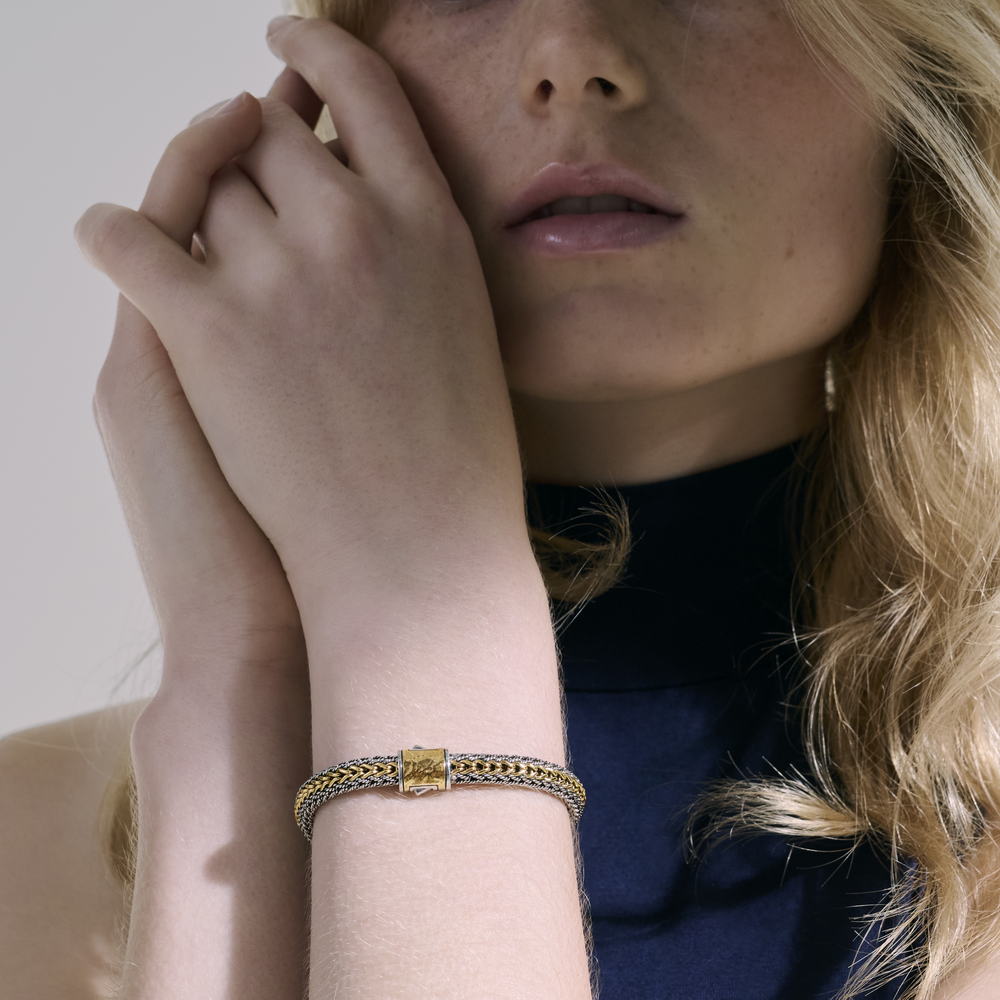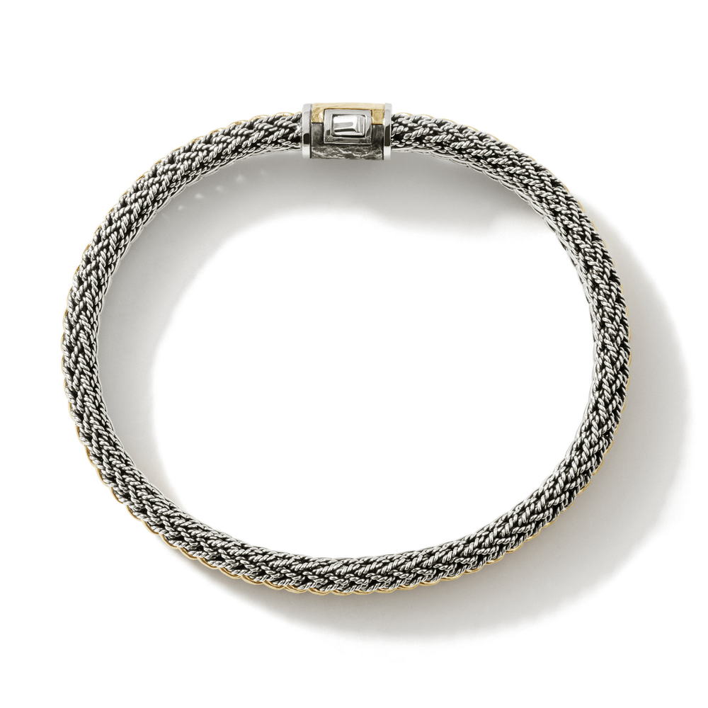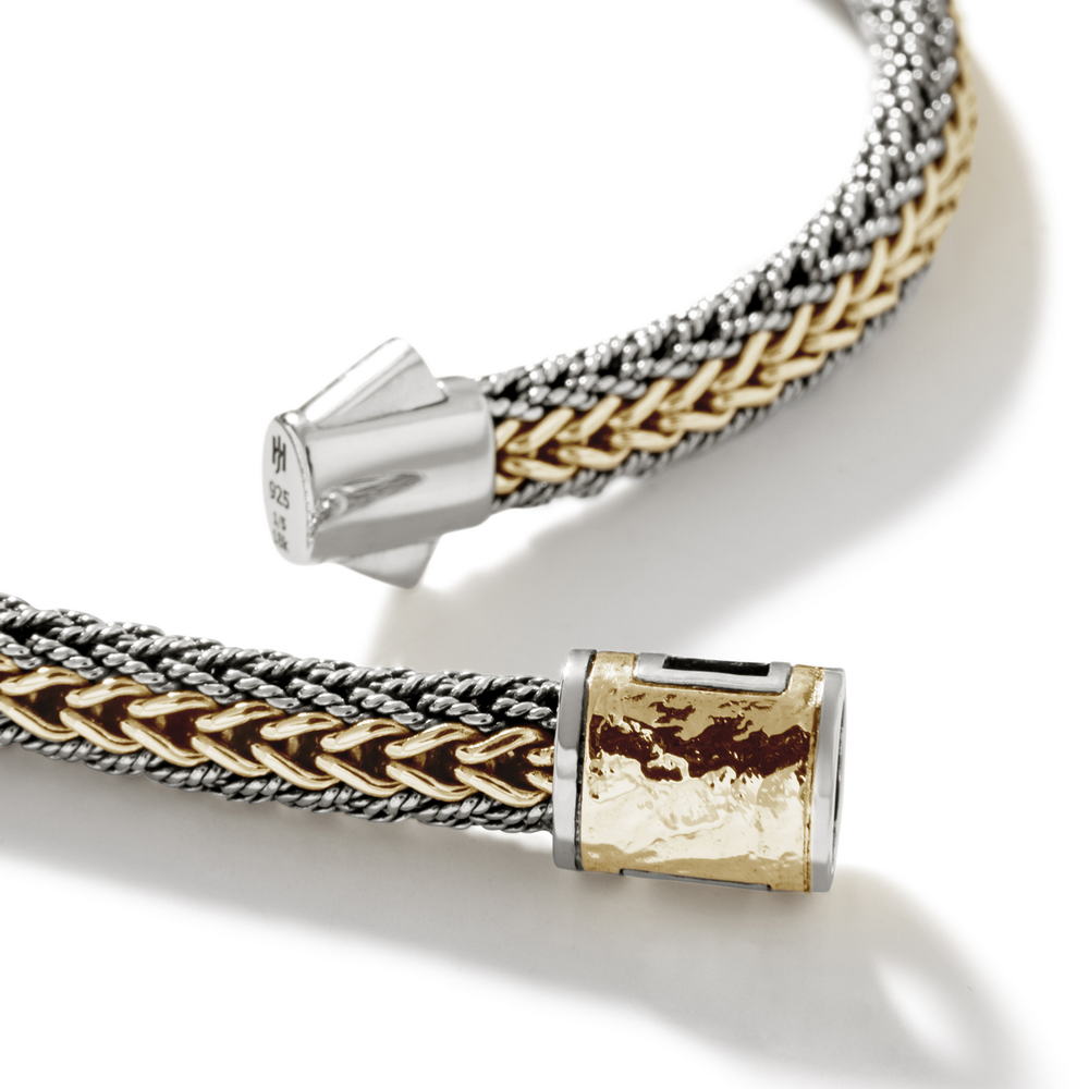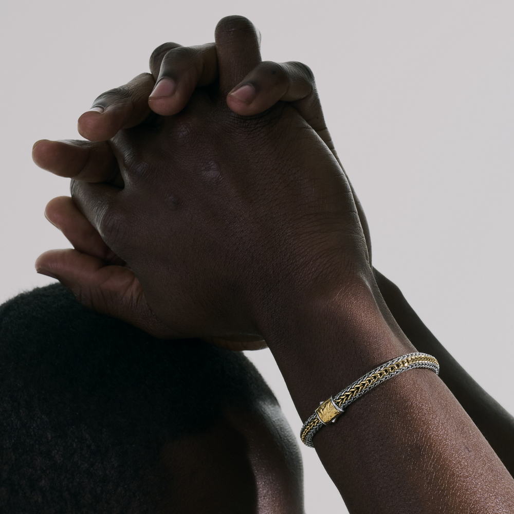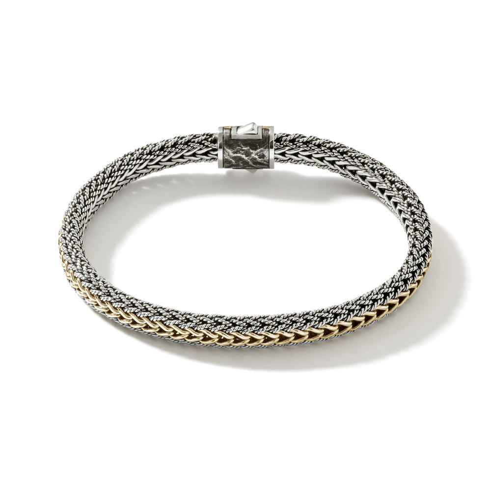 Icon 18K Gold & Silver 7mm Chain Reversible Bracelet with Reticulated Pusher Clasp, Size UM BG