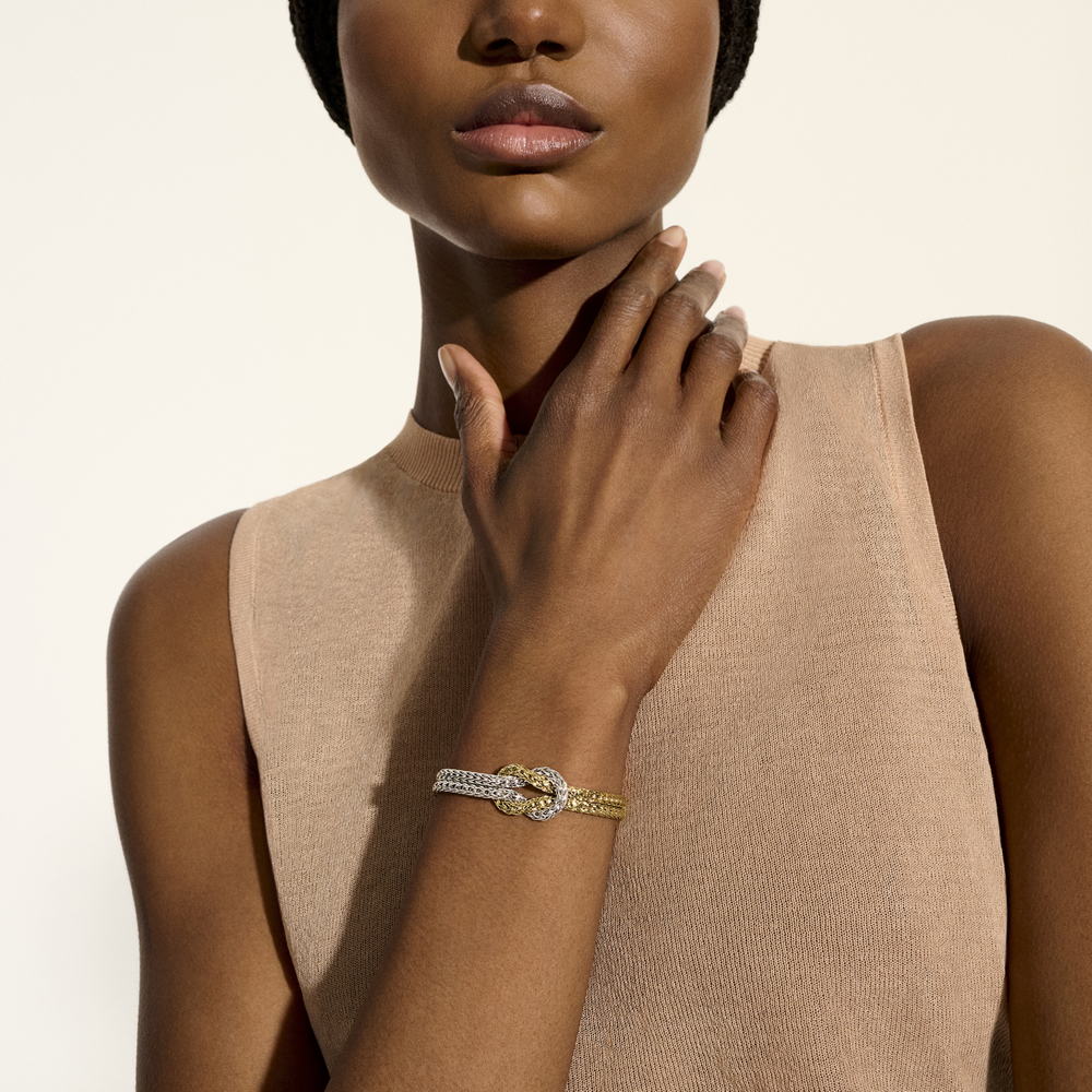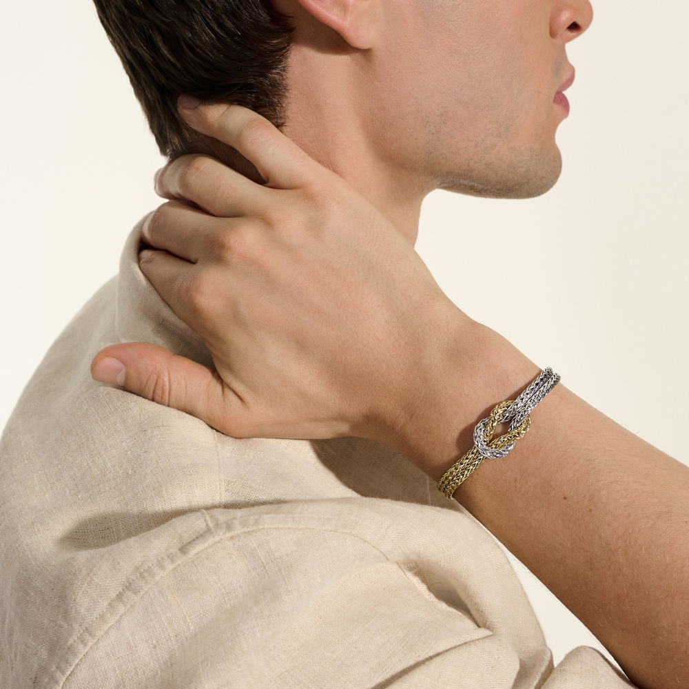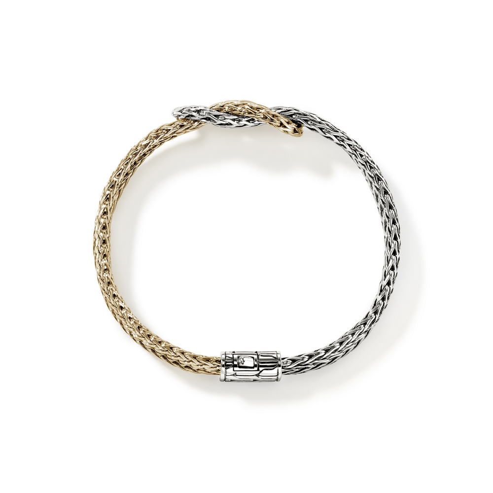 Love Knot 14K Gold & Silver 7mm Slim Chain Double Row Bracelet with Pusher Clasp, Size UM