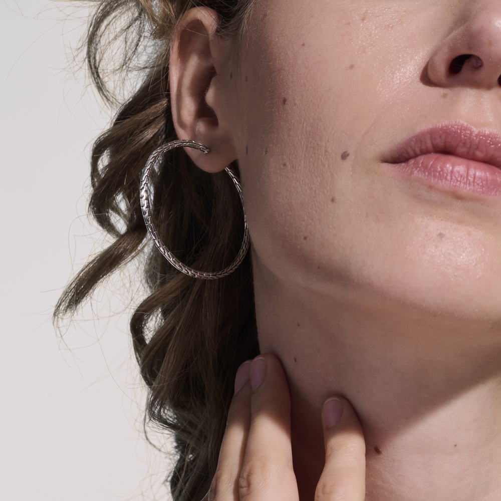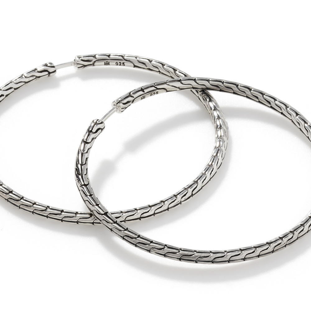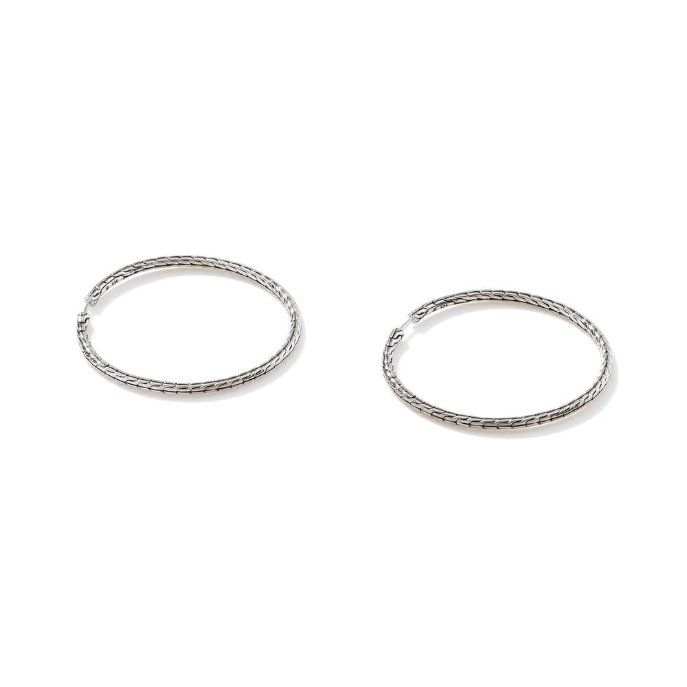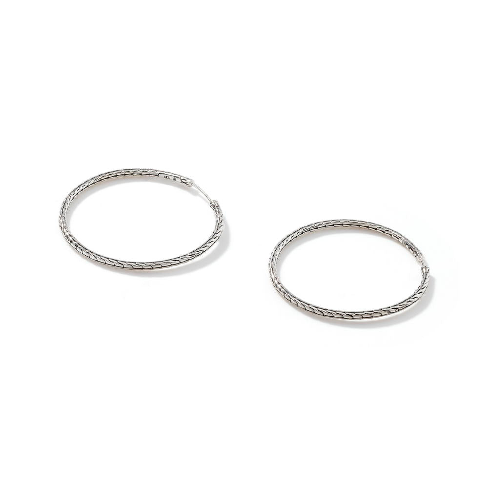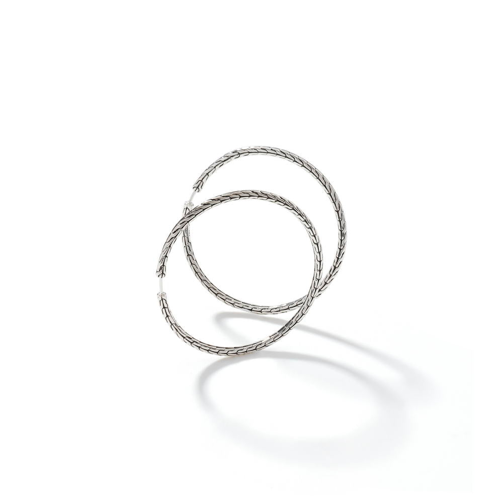 Carved Chain Hoop Earring, Silver, 50MM