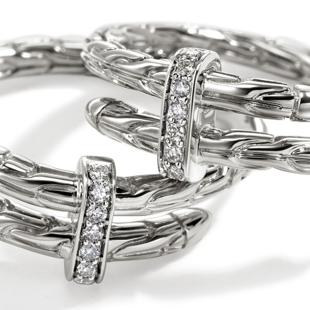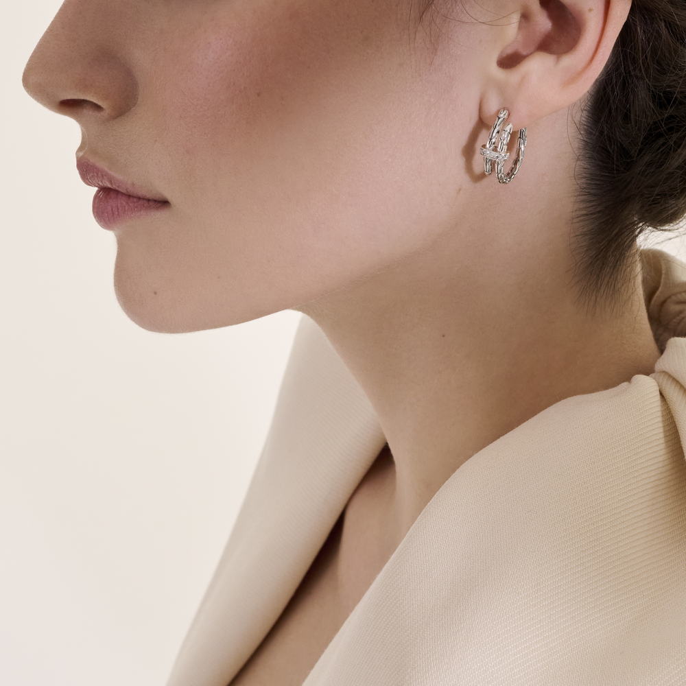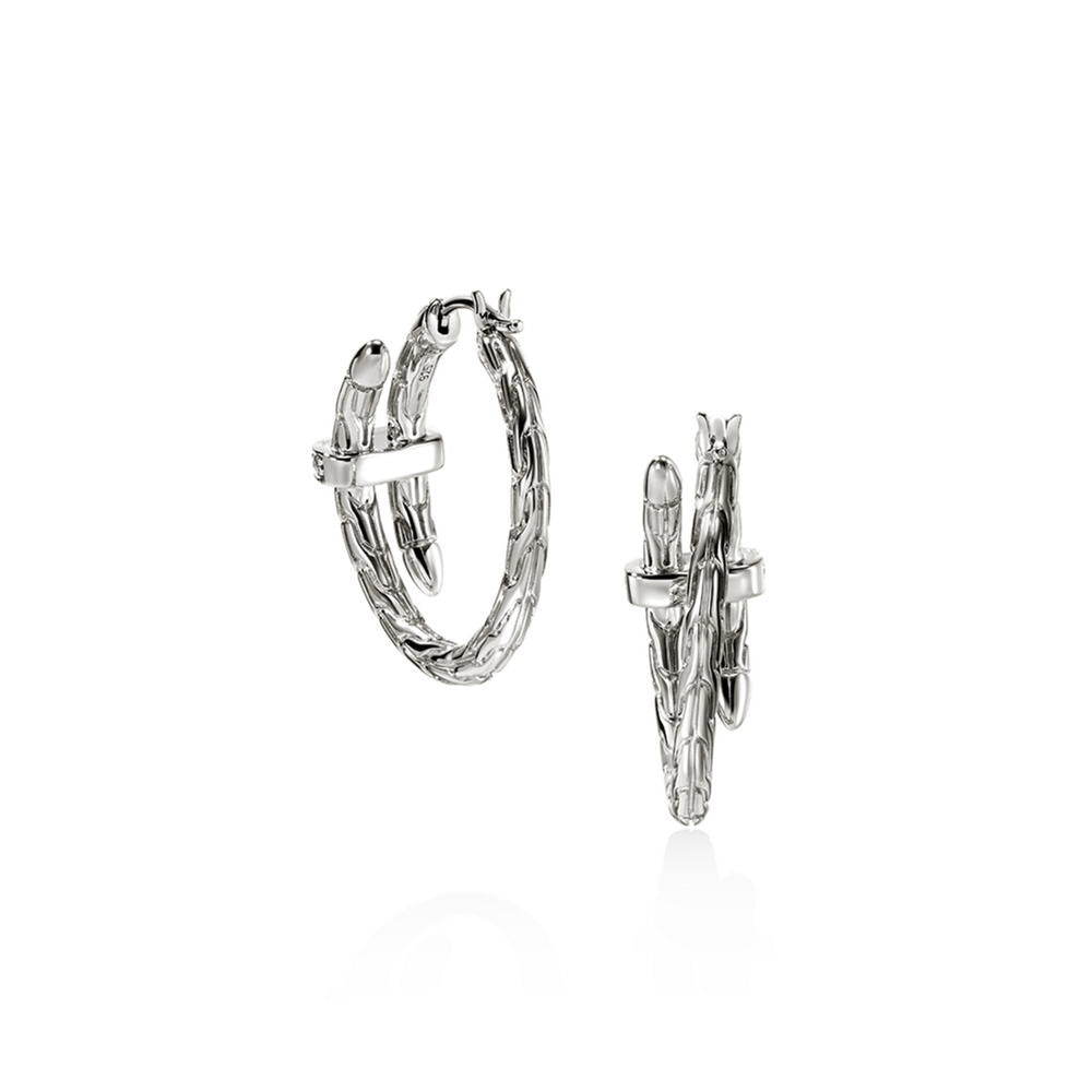 Spear Hoop Earring, Silver, Diamonds, 22.5MM