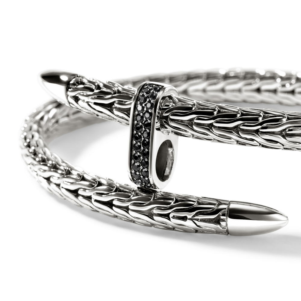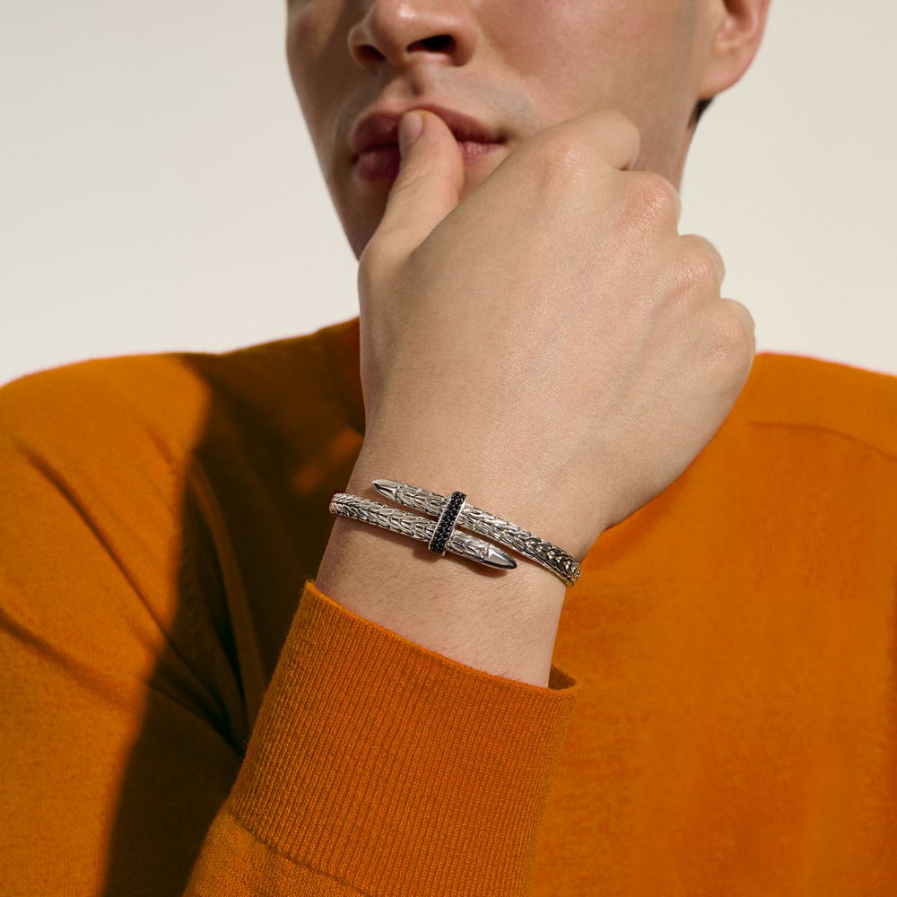 Spear Silver Bypass 5.5mm Flex Cuff with Treated Black Sapphire, Size M