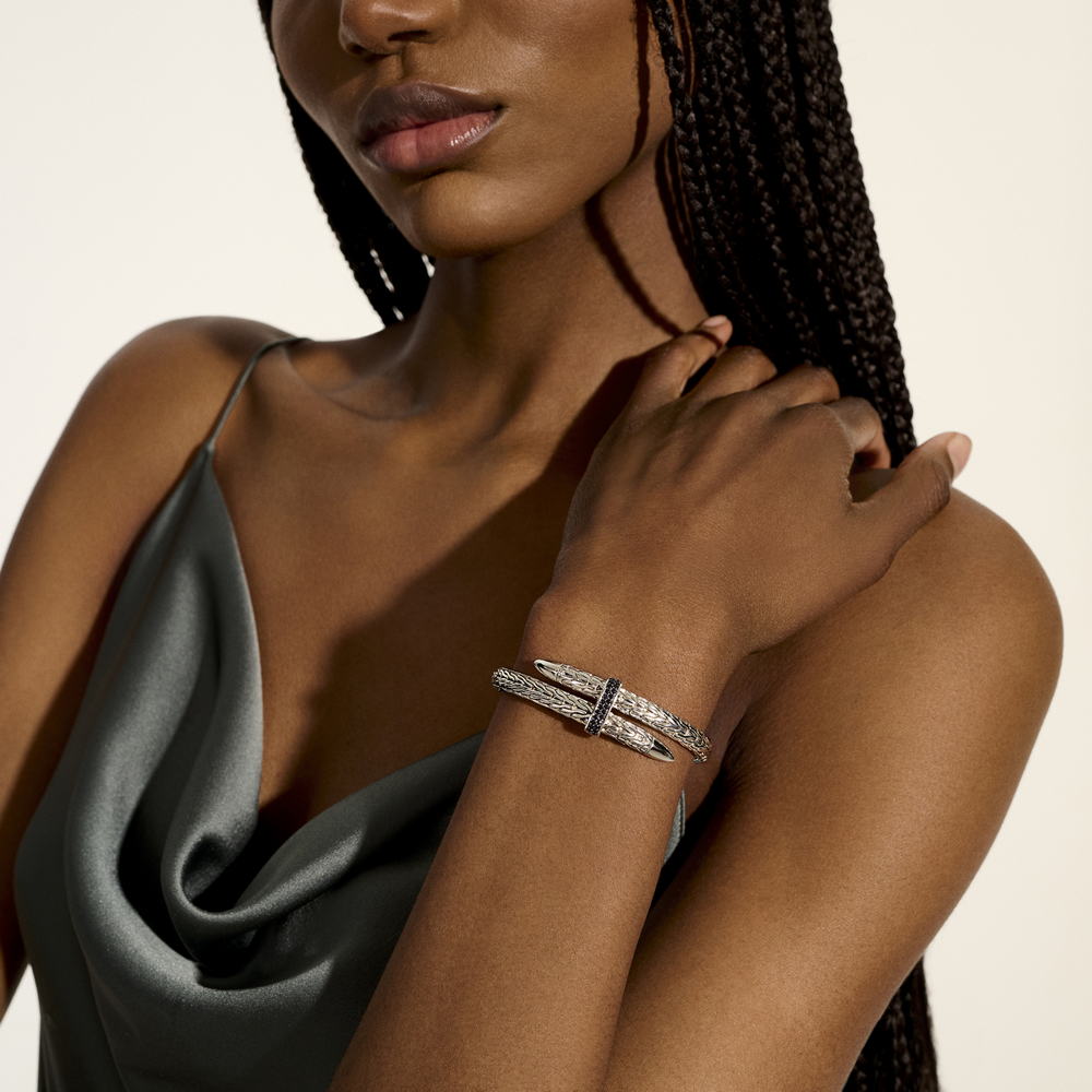 Spear Flex Cuff, Sterling Silver, Gemstones, 5.5MM