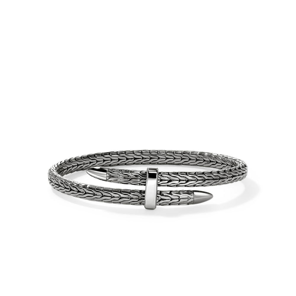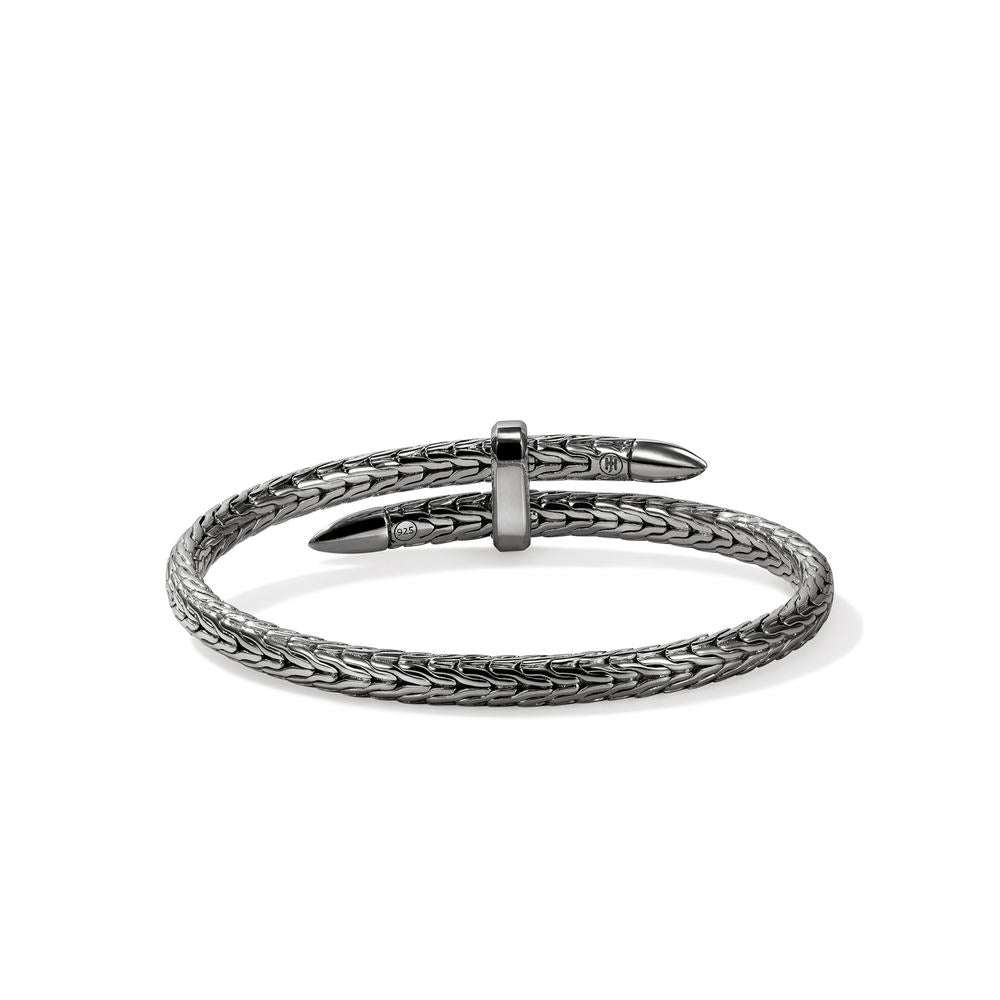 Spear Silver 5.5mm Flex Cuff with Black Rhodium, Size M