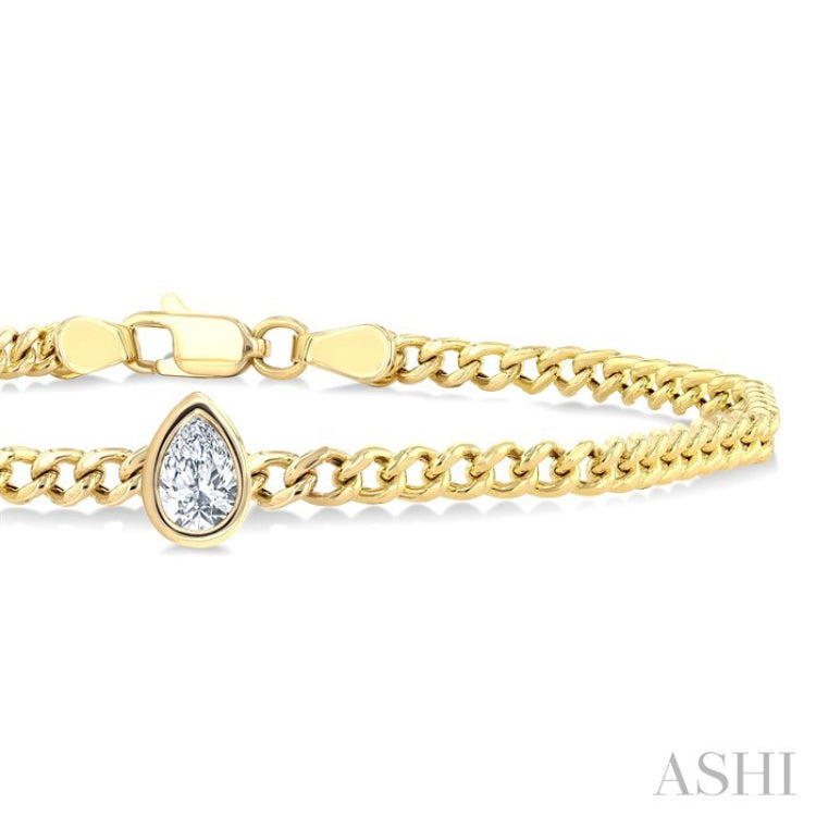 1/4 Ctw Pear Cut Diamond Curb Link Bracelet in 14K Yellow Gold