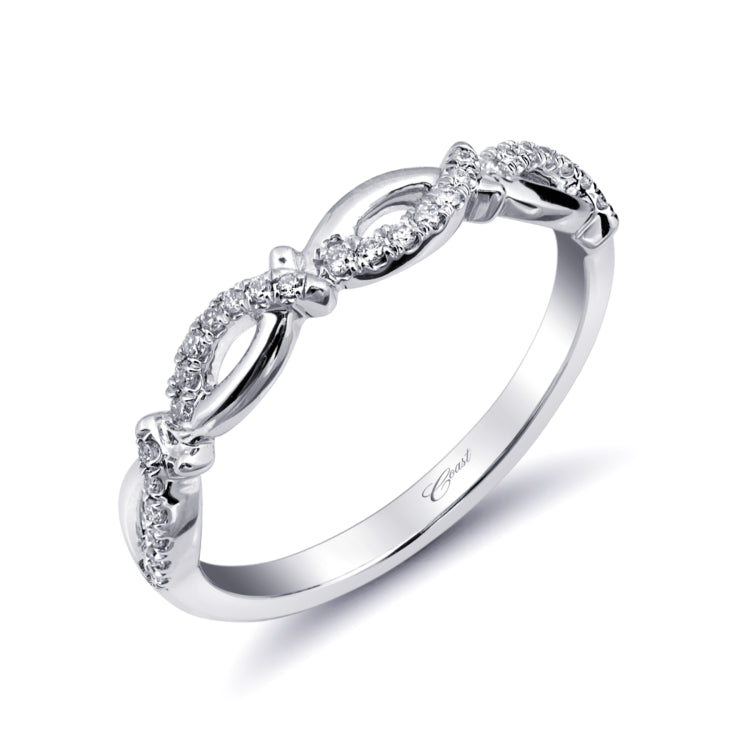 Glistening diamonds adorn this delicately intertwining band.